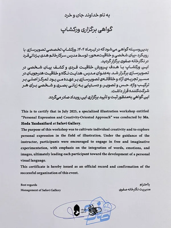 • Summer 2025 – Illustration Workshop with an Approach to Personal Expression and Creativity, Safavi Gallery