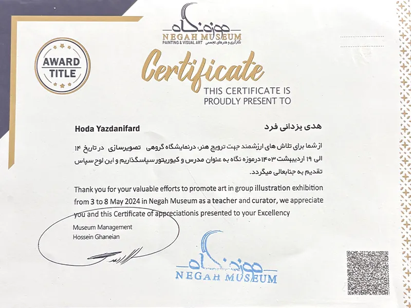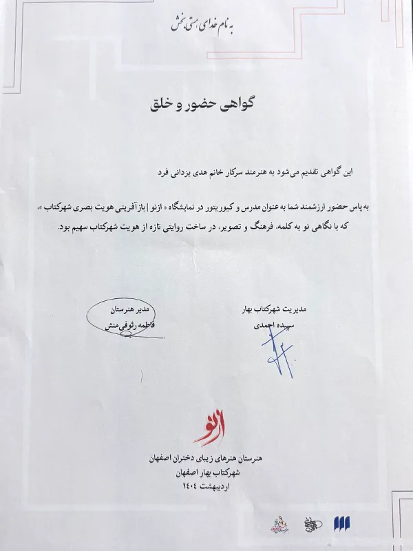 • 2013 – First Place in Visual Arts, Isfahan Province