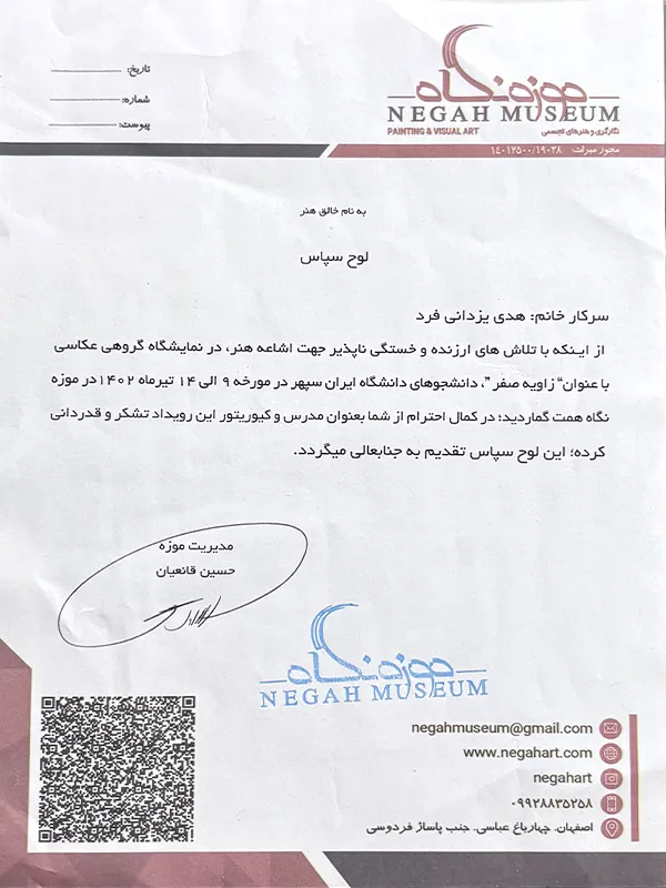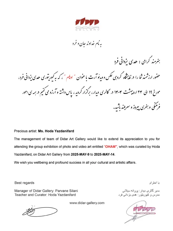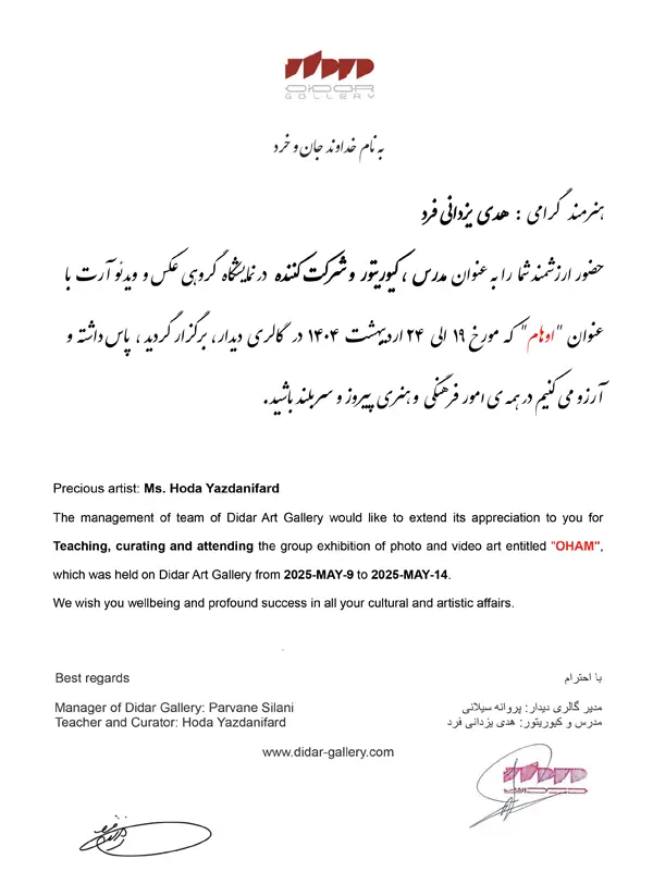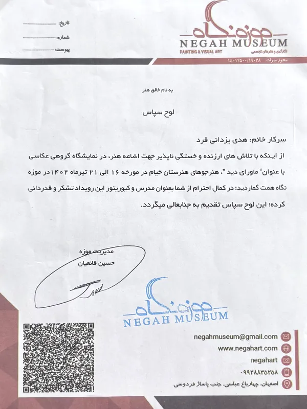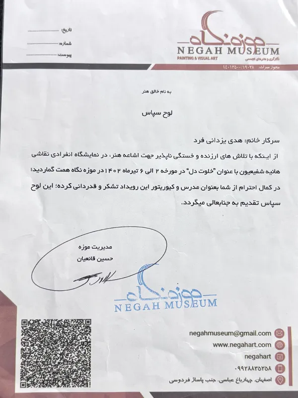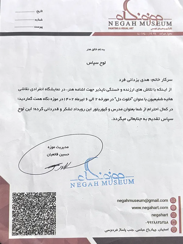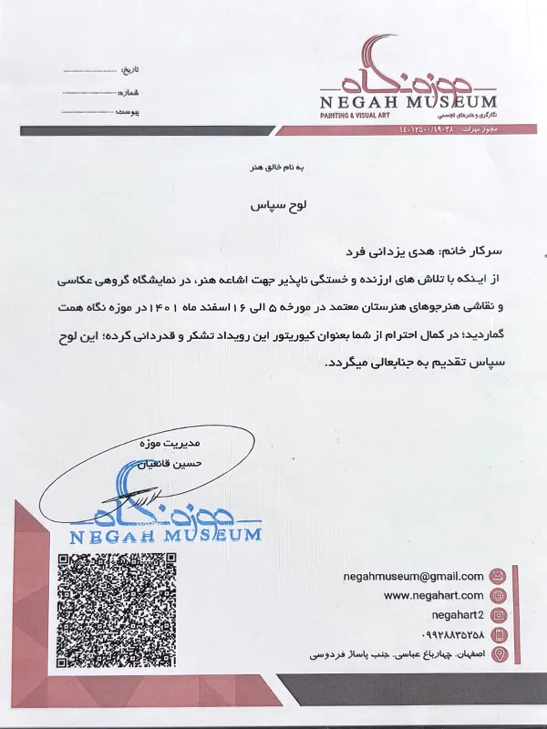 • 2019 – Group Exhibition of Visual Arts, Niavaran Palace Museum