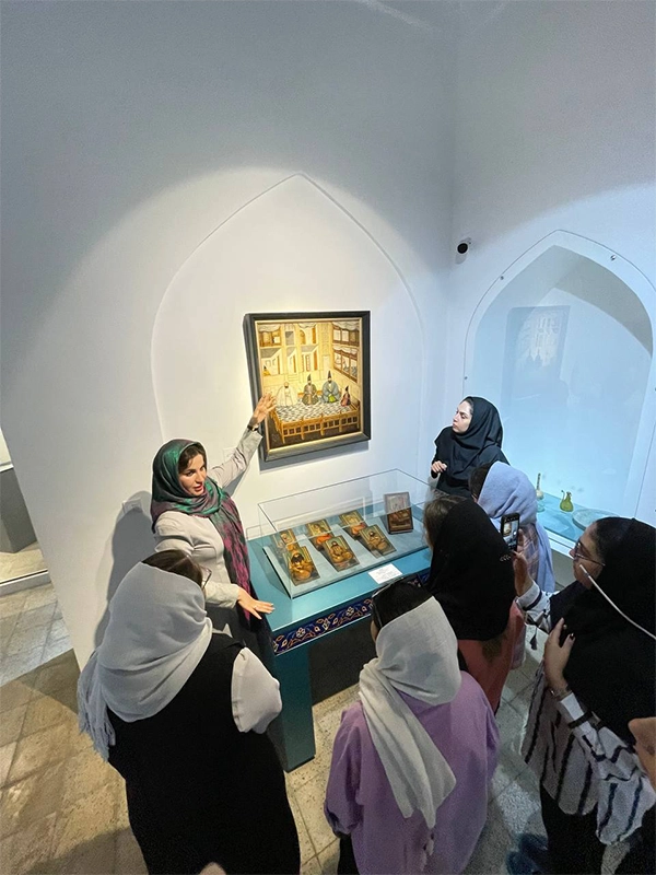 Designing the faces and elements of the work of renowned Isfahan artists in the fields of inlay, calligraphy, painting and miniatures; with hand-printed linoleum