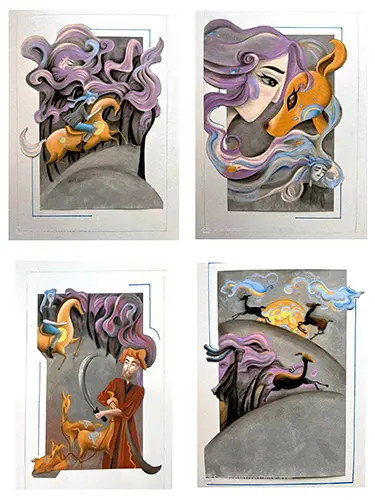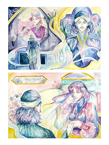 مروح کن دل و جان را و هنر آغاز هزاران راه بی انتها در انتظار ماست و ما کودکان نوپای بی تجربه در آغاز این جاده ی خاکی هستیم که تا فرسنگ ها ردپایی بر آن دیده نمی شود. گویی که جاییست در فراسوی کوچه پس کوچه های پشت مطبخ و نقش جهان راهی با رد گذر محو پیشینیانمان در افق دید مه گرفته ی ما کور سوی امیدی دیده می شود برای کسانی که در دل گرفتگی این جهان در راه هنر گام نهادند. و این نور باریک اگرچه راه را کاملا روشن نمیکند اما امیدی بی پایان است. برای مایی که در این گذر گام نهادیم هنرجو همان که بی باک در این راه پر پیچ و خم در حال جست و جوی هنر میباشد. و مخاطرات پرتگاههایی این راه را با جان و دل می پذیرد و بارها می لغزد و به لبه ی پرتگاه نزدیک میشود و با چون کودکی در حال غرق شدن در دریا است. پا میزند و بارها به زیر آب فرو میرود اما دست از تلاش برنداشته و می کوشد که غرق نشود. کش این راه دستی به کمک او می رود و به سختی او را بالا میکشد و بر ساحل امنی روانه اش می کند. در پایان تشکیل و کنار هم نهادن این نمایشگاه نیرو و زحمت بی پایانی را می طلبید و ما دست در دست هم این راه طاقت فرسا اما شیرین را پیمودیم و به این قله ی زیبا رسیدیم که بی شک نه خاتمه ای است. برای تلاش ما و نه پایانی بر راه بی پایان هنر و هنرمند. ارادتمند شما هدی یزدانی فرد / هنرجویان دوازدهم گرافیک هنرهای زیبا